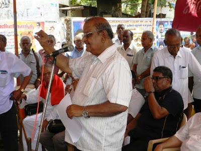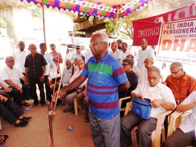 The DHARNA strted with slogan shouting. Com K. Venkatachari, president, AIFPA presided the Dharna. Com N. Balasubramanian, General Secretary welcomed the pensioners. Com Duraipandian, Income Tax employees leader, FNPO General Secretary explained the demands